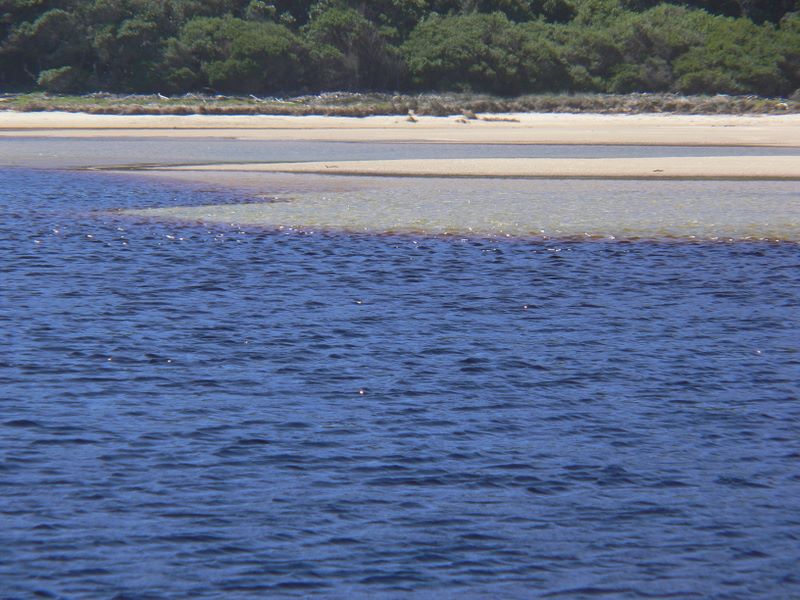 Südafrika März 2008 -- Nature´s Valley - hell ist das Meerwasser und dunkel das Lagunen/Flusswasser.